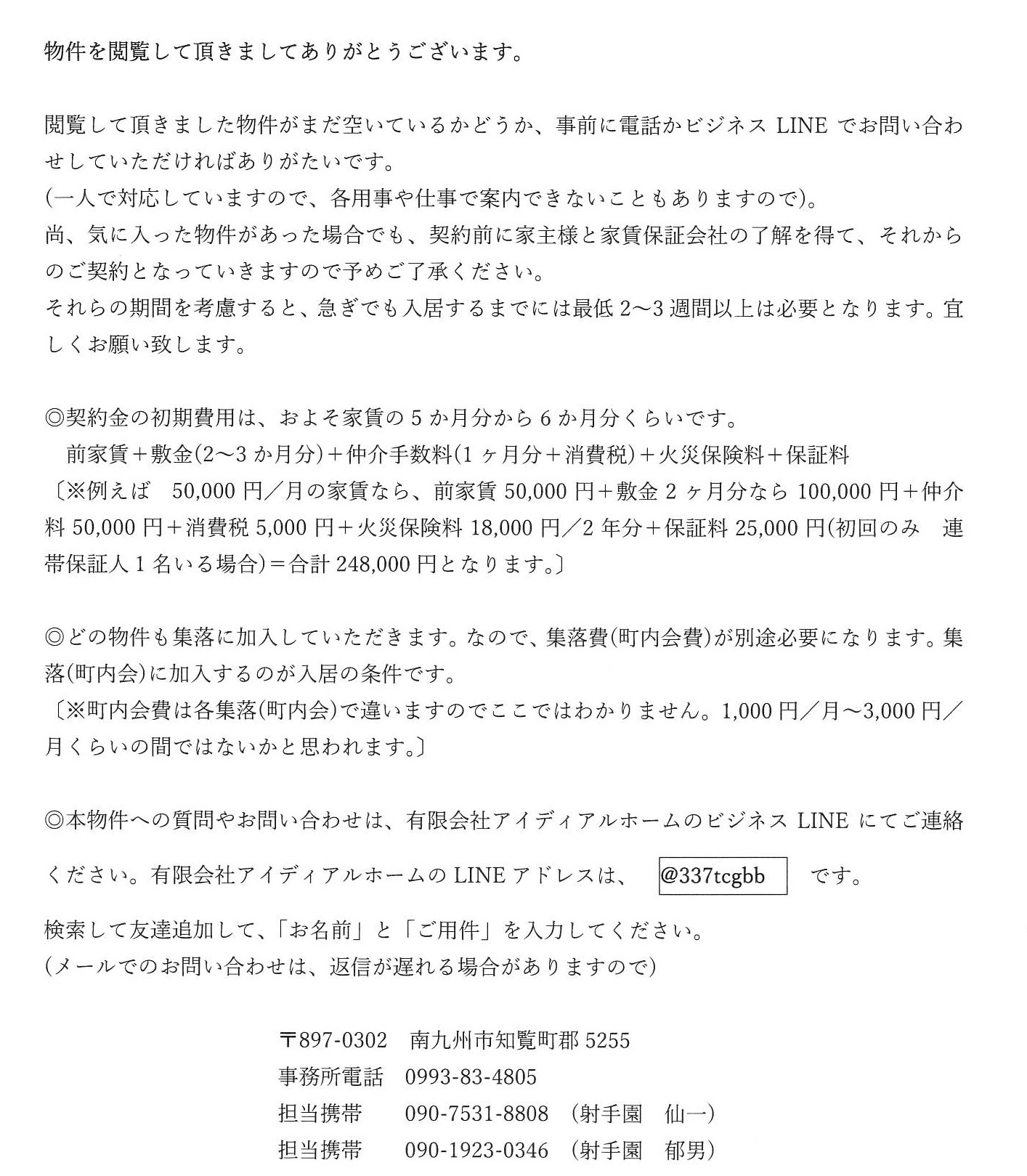 | 集落費 | 別途必ず支払う必要あり | 初期費用目安 | 214,000円 |